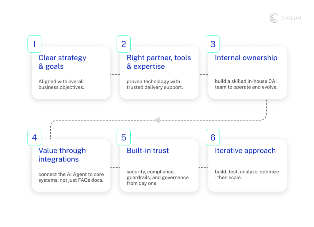 The best AI initiatives begin with empathy. Enterprises should prioritize creating experiences that customers actually trust, starting with natural language understanding and user-centric flows that reduce frustration.